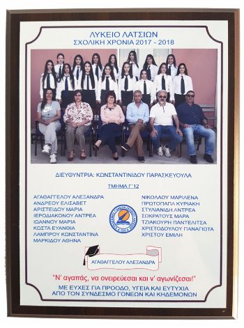 Wooden and glass plaques. Ranging from different sizes and designs. On the plaques we attach a metal plaque on which we print anything in any colour the customer wants.